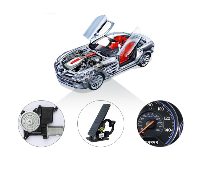 霍尔器件通过检测磁场变化,转变为电信号输出,可用于监视和测量汽车各部件运行参数的变化。例如位置、位移、角度、角速度、转速等等,并可将这些变量进行二次变换;可测量压力、质量、液位、流速、流量等。