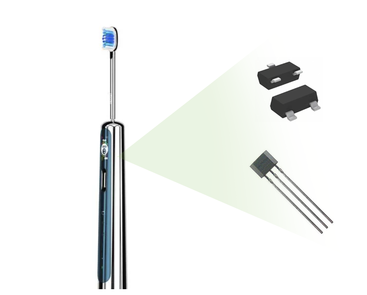 1、电动牙刷中刷头组件的运动产生磁场与内部磁控开关感应;