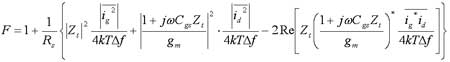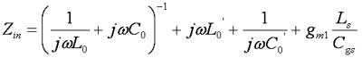 其中,Rs为信号源电阻;Zt=Zg+Zs+Zgs,Zg和Zs为连接到栅极和源极的阻抗,Zgs是连接输入管栅漏两端的阻抗,一般为1/jωCgs;