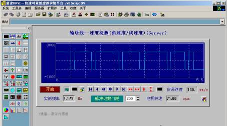 4. 点击“开始”按钮运行服务器端的实验脚本,如果显示波形没有出现近似矩形波,并且相关的速度测量是无效的,请调整脉冲计数门限,直到出现正常的波形为止,如图23.3所示。