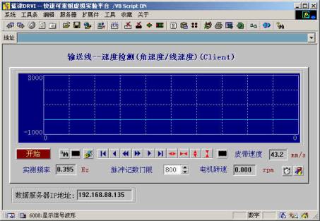 3. 在DRVI软件平台的地址信息栏中输入如下信息“http://服务器IP地址:8600/GccsLab/index.htm”,打开WEB版实验指导书,在实验目录中选择 “霍尔传感器传输速度测量”实验,点击附录中“服务器端”脚本文件链接,将本实验的“服务器”端脚本文件读入。
