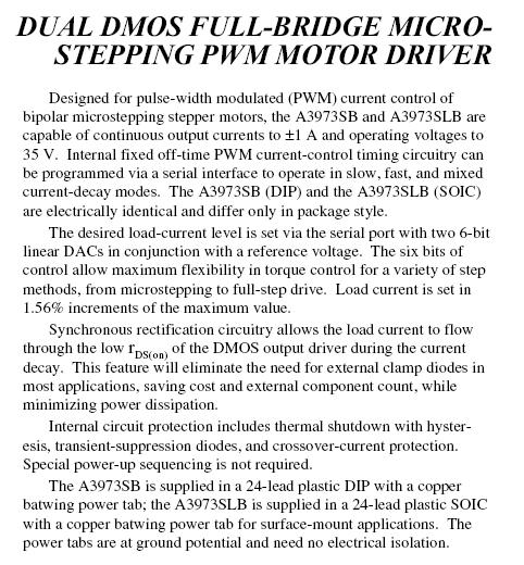 DMOS 双全桥 PWM 微步电机驱动器 A3973