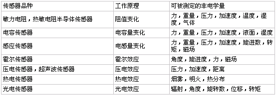 常见传感器的应用领域和工作原理列于表1.1.点击浏览该文件按照其用途,传感器可分