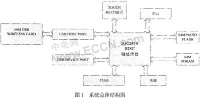 无线网卡是这个移动终端的关键设备,鉴于市面上大部分的llM无线网卡已经停产或者即将停产,以及社会对具有更高网络接入性能的嵌入式设备的需求,我们选择芯片组型号为rt2573的54M无线网卡。由于S3C2410处理器已经集成了USB HOST控制器,所以不需要附加额外的芯片,网卡可以直接通过USBHOST PORT接入,非常方便。