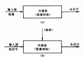 无源传感器不能直接转换能量形式,但它能控制从另一输入端输入的能量或激励能(参阅图2(b))。