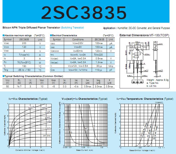 晶体管 2SC3835 用于雾化器 加湿中 原装100% 现货