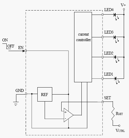 恒流输出:四路输出,每路最大200MA,最大可达800MA