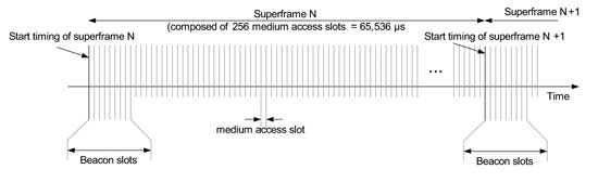 由于无线USB的自身特性,与有线USB相比,它要有一些“额外”的开销。无线 USB 建立在 WiMedia UWB 平台之上,该平台包含用于点对点(ad hoc) 个人域网络(piconet)的一个 UWB 物理(PHY)层,以及整套的分布式介质访问控制(MAC)协议。如图1所示,WiMedia MAC将空中时间划分成一种65ms的基本时序结构,名为超帧(superframe)。然后再进一步划分为 256个介质访问隙(medium access slot)。每个超帧都开始于一个占16个介质分配隙(MAS)的信标期(beacon period)。信标是WiMedia MAC的核心;每个活动的WiMedia设备尝试在信标周期内传输自己的信标时,都必须聆听其他的信标。换句话说,空中时间的 1/16必须用于WiMedia MAC协议的信标操作。