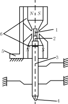 图31 霍尔加速度传感器的结构及其静态特性 3.2.10.4 霍尔振动传感器 图32所示为一种霍尔机械振动传感器。图中,1为霍尔元件,固定在非磁性材料的平板2上,平板2紧固在顶杆3上,顶杆3通过触点4与被测对象接触,随之做机械振动。元件1置于磁系统6中。当触头4靠在被测物体上时,经顶杆3,平板2使霍尔元件在磁场中按被测物的振动频率振动,霍尔元件输出的霍尔电压的频率和幅度反映了被测物的振动规律。 应当说明,在现代电子装置中,上述应力、压力、加速度、振动等传感器所得数据,都可经微机进行处理后直接显示出被测量数据或将被测量数据供各种控制系统使用。 图32 霍尔机械振动传感器结构原理(待续) |