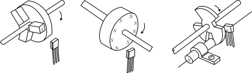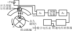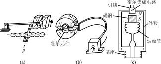 图25 霍尔流量计 由图26可见,经过简单的信号转换,便可得到数字显示的车速。 利用锁定型霍尔电路,不仅可检测转速,还可辨别旋转方向,如图27所示。 曲线1对应结构图(a),曲线2对应结构图(b),曲线3对应结构图(c)。