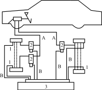 1.车轮速度传感器2.压力调节器3.电子控制器 图23 ABS气制动系统的工作原理示意图 3.2.9 旋转传感器 按图24所示的各种方法设置磁体,将它们和霍尔开关电路组合起来可以构成各种旋转传感器。霍尔电路通电后,磁体每经过霍尔电路一次,便输出一个电压脉冲。