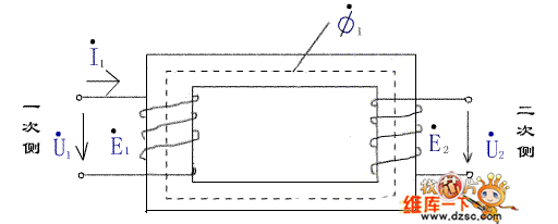 当一个交流电压U1加在初级线圈两端时,导线中就有交变电流I1并产生交变磁通ф1,它沿着铁心穿过初级线圈和次级线圈形成闭合的磁路。在次级线圈中感应出互感电势U2,同时ф1也会在初级线圈上感应出一个自感电势E1,E1的方向与所加电压U1方向相反而幅度相近,从而限制了I1的大小。为了保持磁通ф1的存在就需要有一定的电能消耗,并且变压器本身也有一定的损耗,尽管此时次级没接负载,初级线圈中仍有一定的电流,个电流我们称为“空载电流”。