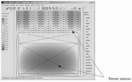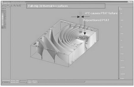 集成电路尺寸缩小,集成度增高,而且同一块芯片上混合集成了模拟电路和数字逻辑电路,这一切都使由温度引起的设计问题不断增加。在设计阶段进行片上热分析的需求不断增长,并且这一需求正在得到认可。将热分析(利用热模型和电模型以及芯片的封装特性分析)加入标准设计流程就使设计师能够在设计早期检测并修复与热量相关的问题。热问题一旦检测出来之后,可以通过几种方式解决,例如布图规划调整或改进芯片封装。利用每个器件的温度以及温度梯度信息,设计师就能在流片之前确定其设计的性能和正确性,从而避免出现代价高昂的芯片失效和设计返工。