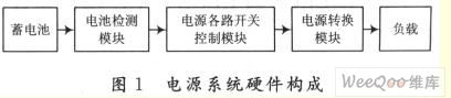本系统电源模块主要对电源检测、电源开关智能控制以及电源转换进行了设计。电路系统硬件构成框图如图1所示。