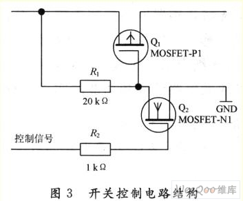 该电源系统各支路的开关控制主要由场效应管构成的开关电路来实现。实现该功能的电路结构如图3所示。