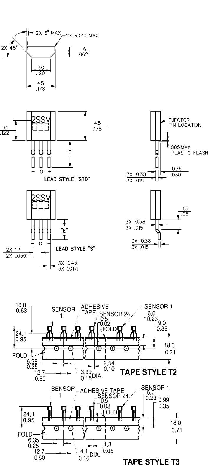 ● 3 管脚并排PCB 安装,管脚间隔0.05 英寸