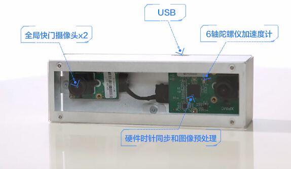 百度机器人视觉解决方案采用硬件开源、软件开放的形式为开发者提供全方位一站式服务,包括硬件模组和机器人SDK两部分。硬件方面,百度自主研发的立体惯性相机模组配置了两个全局摄像头和一个传感器,开发者可根据需要调整双目的距离。机器人SDK提供视觉惯性SLAM、障碍物检测、平面2D建图等离线功能,以及人脸、文字、物体等云端识别功能。