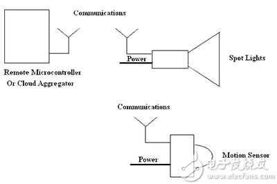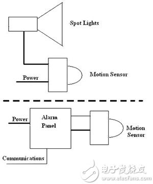 在我们的示例中,安全灯的动作不再由自己的运动检测器驱动和控制, 而是由微控制器来进行监控。 泛光灯的开/关链路不再只是开和关。 这些灯受基于微控制器的调光器驱动。
