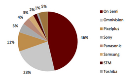 全球车载摄像头 CIS 主要厂商市场份额(2016)