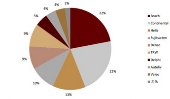 全球毫米波雷达市场由 Tier 1 供应商主导。据佐思产研统计, 2015 年博世、大陆、海拉、富士通天、电装为全球前五的厂商,合计占据 76%的份额。汽车雷达 MMIC 市场的绝大部分份额则被英飞凌、意法半导体、 NXP 和 TI 四家瓜分。