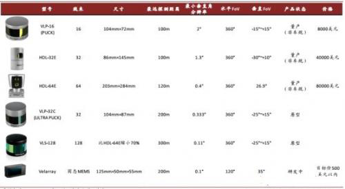 国内外车载激光雷达厂商产品对比