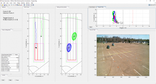 图 2:左侧的图表清楚地显示了使用IWR1642检测和跟踪两辆车的过程