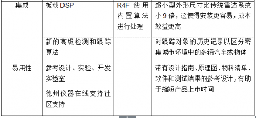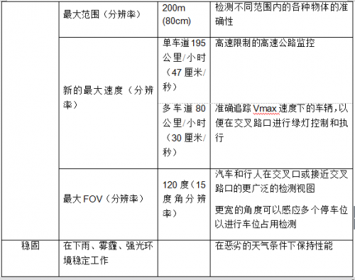 表1:TI的毫米波传感器为智能交通系统提供了优势