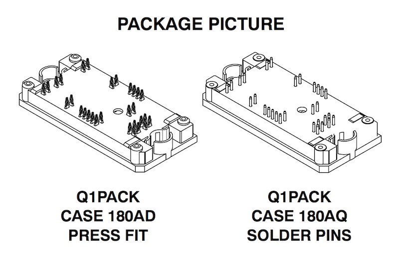 NXH160T120L2Q1SG也可作为NXH160T120L2Q1PG使用,不同之处在于前者使用焊针而后者采用压配销。
