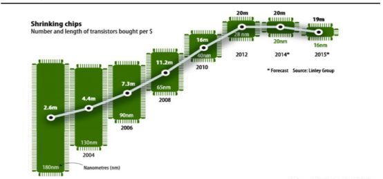 全球半导体产业中, PC 在主导产业 10 多年后, 已经逐渐让位于消费电子, 随着摩尔定律逐渐到达其瓶颈, 制程的进步已经渐近其物理极限。 根据 MonolithIC 3D 创办人 Zvi Or-Bach 的观点,在 28 纳米之后, 晶圆厂可以继续把晶体做得更小、但却无法更便宜, 对制程要求相对较低的物联网应用可能会成为成熟制程重要的下游产业应用。