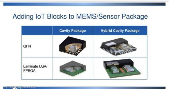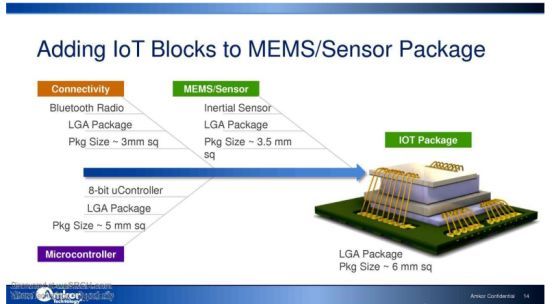 随着下游最重要的应用场景物联网的快速发展, MEMS 在 IOT 平台的产品未来会逐渐演化到 SIP 封装就显得尤为重要。往往单个 MEMS 模块会集成包括 MCU(Microcontroller Unit)、 RF 模块(Radio Frequenc,例如蓝牙, NB IOT 发射模块) 和 MEMS 传感器等多个功能部分。 系统级的封装带来的同样是快速响应速度和及时的产品更新换代,这对于消费电子产品来说极端重要。目前很多代工厂或者封装厂例如 Amkor 都在推广标准化的 IOT MEMS 平台产品。