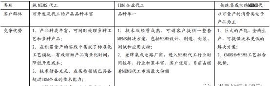 基于之前阐述的 MEMS 本身区别于传统 IC 产业特征, 我们认为行业的核心门槛在于两点:设计理念和封测工艺。