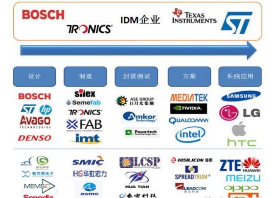 微机电系统的生产制造涵盖设计、制造和封测。由于系统器件具有高度定制化、制程控制与材质特殊的特点,封装与测试环节至少占到整个成本的 60%。因此,为了能够在日益严峻的产品价格下跌趋势下有效降低成本,多数无晶圆或轻晶圆MEMS 供应商将封装与测试环节外包给专业封测厂商,这也将为 MEMS 器件封装及测试厂商带来机遇。