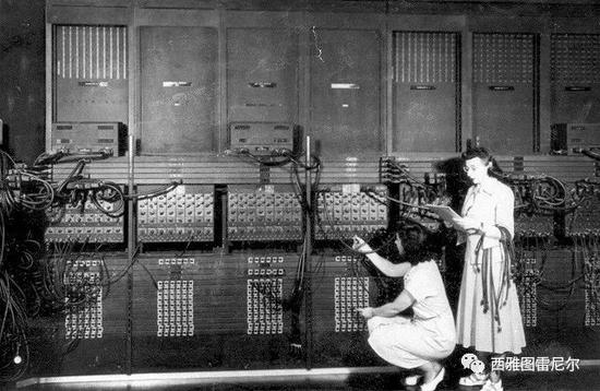 电子管比继电器的优点,快,显而易见。但是在制造ENIAC的过程中电子管的问题也暴露出来了,傻大笨粗。 ENIAC总重达30吨!