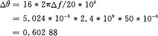 11g标准中允许的发射机与接收机频偏范围均为+25 ppm,也就是发射机与接收机最大可能频偏为±50 ppm,在此条件下经过一个周期16个采样点后,相位相差: