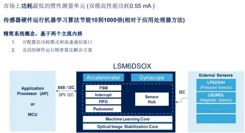 归根结底,低功耗和小尺寸是传感器产品最需要的,而通过加入硬件AI加速器,可以将过去处理器的工作量降为20%-30%,极大降低了系统功耗,同时该处理器也支持外部数据处理,实现更好的传感器数据融合。