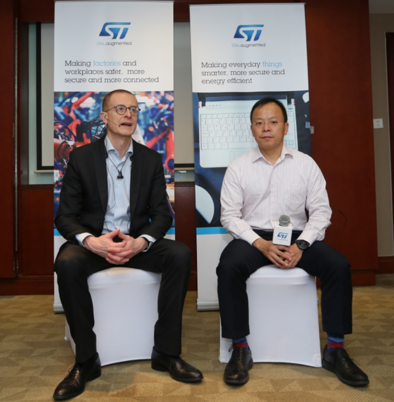 左为意法半导体模拟、MEMS及传感器事业部(AMS部门)副总裁、MEMS传感器产品部总经理Andrea Onetti,右为意法半导体AMS部门亚太区资深总监吴卫东。
