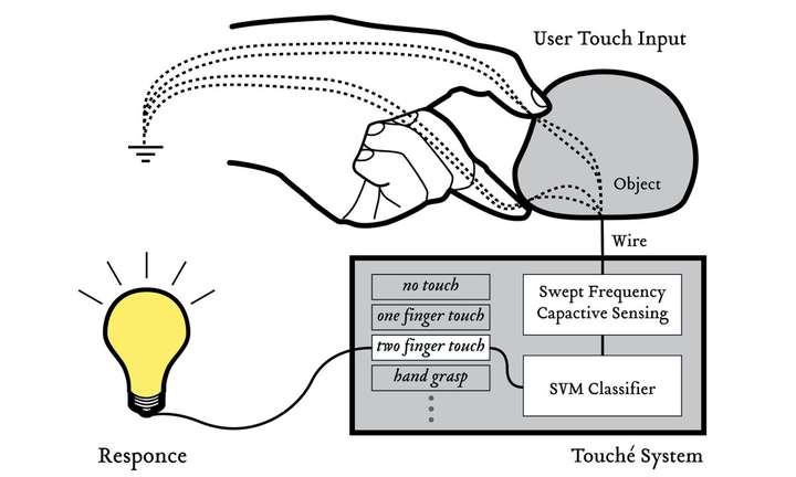 Google ATAP µÄ¸ºÔðÈË Ivan Poupyrev£¬Ôø¾ÓÐÒ»¸ö½Ð¡¸Touch¨¦¡¹µÄÏîÄ¿Èôó¼ÒÓ¡ÏóÉî¿Ì¡£Touch¨¦Í¨¹ýµçÈÝÐÔÖ¸ÎÆ¿ÉÒÔʶ±ðºÍÇø·ÖÓû§Éí·Ý£¬ÔÚ½»Á÷µçϼì²â³ö²»Í¬¸öÌåµÄµç×迹£¬½ø¶øÎªÃ¿¸öÓû§´´½¨ÊôÓÚËûÃÇ×ÔÉíµÄ¸öÈËÐÅÏ¢¿â£¬°üÀ¨¹ÇÃܶȡ¢¼¡ÈºÖÊÁ¿ºÍÒÂÎïµÈ¡£ ToucheÈÃÎÒÃÇÉú»îÖг£¼ûÎïÌå¶¼±ä³É´«¸ÐÆ÷£ºÃŰÑÊÖ¡¢ÉíÌå¡¢Ö²ÎïÉõÖÁË®¡£