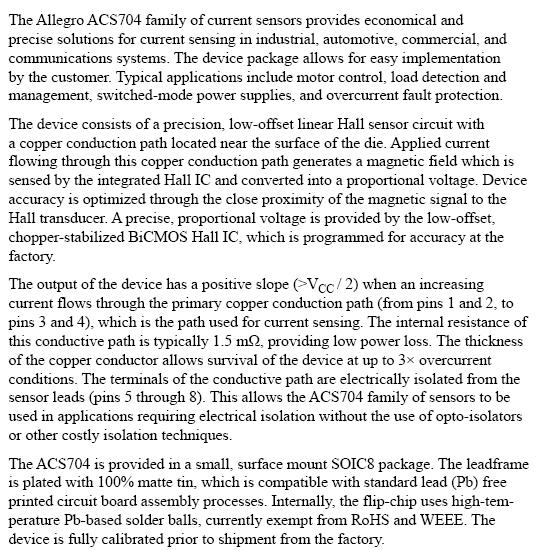 ACS704ELC-015 电流传感器 附技术资料 (PDF文档)