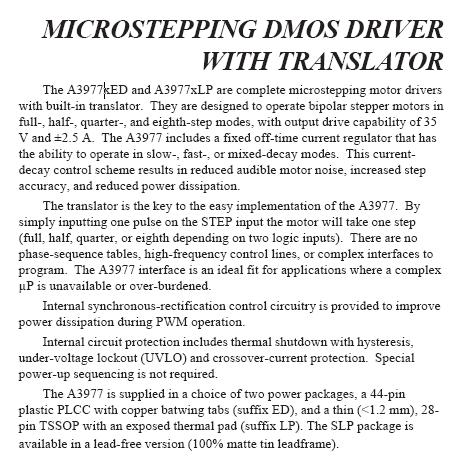 DMO带译码的微步电机驱动器A3977SED