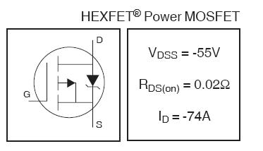 Fifth Generation HEXFETs from International Rectifier utilize advanced processing techniques to achieve extremely low on-resistance per silicon area. This benefit, combined with the fast switching speed and ruggedized device design that HEXFET Power MOSFETs are well known for, provides the designer with an extremely efficient and reliable device for use in a wide variety of applications.