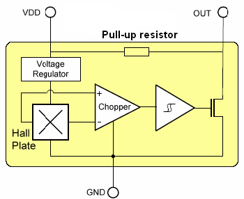 ultra high sensitivity Hall sensor integrated with pull high resistor