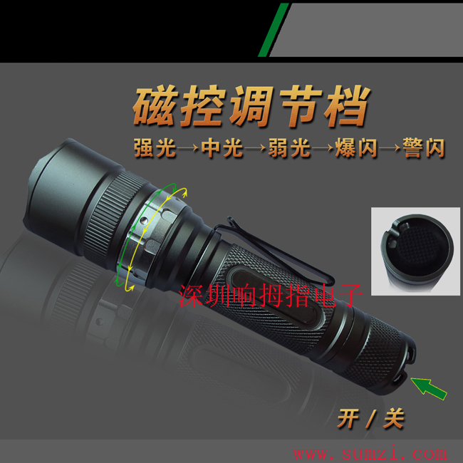 2. 磁控调光手电、为军警、搜索、户外、探险、旅游、台灯特别设计;