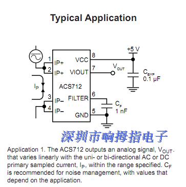 这让 ACS712 电流传感器 IC 可用于那些要求电气绝缘却未使用光电绝缘器或其它昂贵绝缘技术的应用。