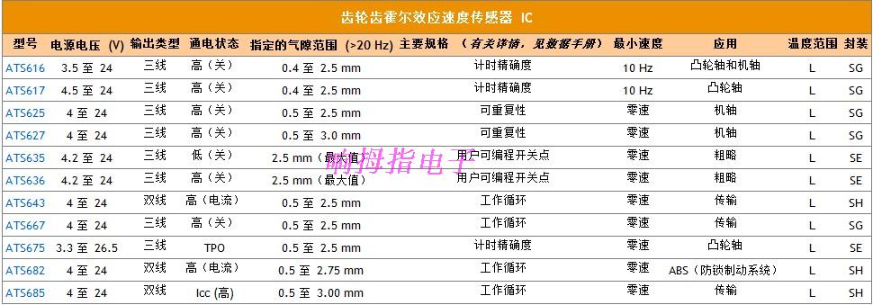 下面给大家列出最新齿轮齿霍尔效应速度传感器ic选型表:
