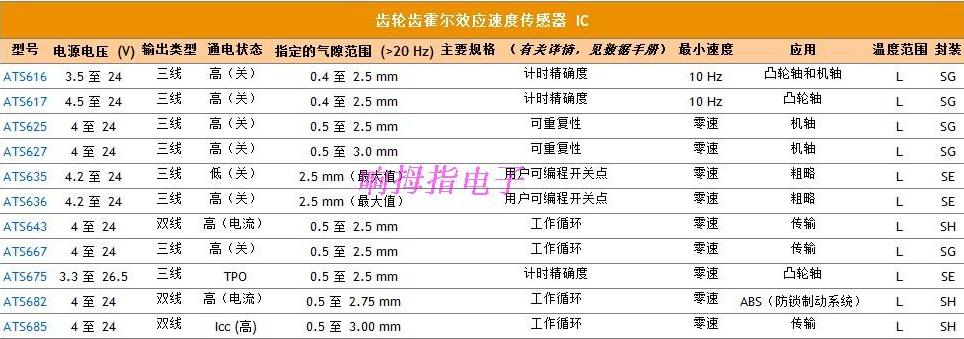 该器件结合了双元件霍尔 IC,可响应铁磁目标产生的差分磁性信号而进行开关操作。该 IC 包含一个先进的补偿电路,以消除磁铁的不良影响和系统偏置。模拟信号的数字处理可提供独立于气隙的真零速性能,并可就汽车应用中常见的操作条件(降低的振动灵敏度)对器件性能提供动态适应。高分辨率峰值侦测 DAC 用于设置器件的自适应开关阈值。阈值中的滞后可降低磁性信号中任何异常的消极效果,这些信号与用于许多汽车应用的目标相关联。