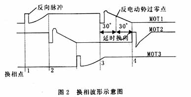 TDA5142T的调速主要由OTA和外搭的放大电路实现,通过调节电位计R9,改变MOSFET的电源电压VMOT,进而改变电机的转速,图1为系统工作原理图。 2.1 换相技术
