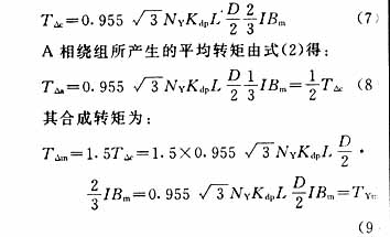设星形绕组通过的电流为I,每相串联匝数为NY,则由式(2)得星形每相绕组的平均转矩为: