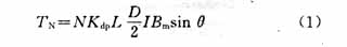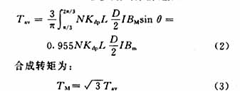 由于假设转子磁钢所产生的磁感应强度在电机气隙中是按正弦规律分布的,即B=Bmsinθ,这样,如果在定子某一相(例如A相)绕组中通一直流电流,则所产生的转矩[2]为: