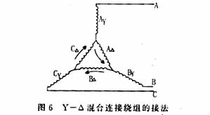 在采用Y-Δ混合连接绕组时,若能满足或基本满足,Y连接部分的绕组所产生的感应电势在时间上滞后于Δ连接部分的绕组所产生的感应电势—21—30°电角度(这可由两部分绕组在相带中所占的位置决定),并基本满足三角形绕组和星形绕组分别是对称的30°相带的三相绕组,并使每相绕组电压在时间上相差120°,让两部分绕组产生的磁势幅值相等,便可以完全消除或大大削弱5、7、17、19等6K±1(K=奇数)次谐波磁势,从而改善气隙磁场波形,使谐波转矩下降,改善电机转矩。