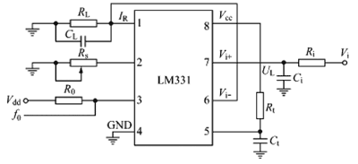 LM331是美国国家半导体公司生产的双列直插式8脚芯片,只需接入几个外部元件就可以方便地构成电压/频率(V/F)变换电路,电路如图4所示。